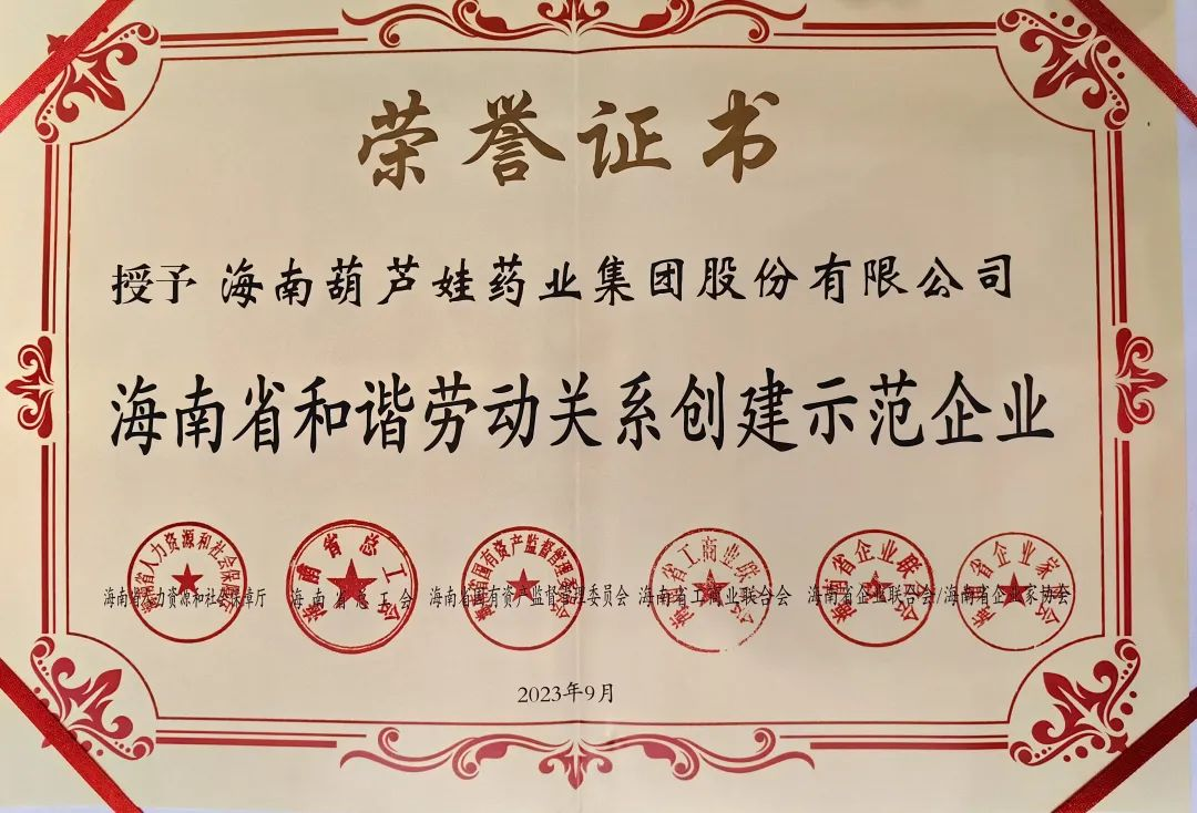 东升国际药业集团获评“海南省和谐劳动关系创建示范企业”