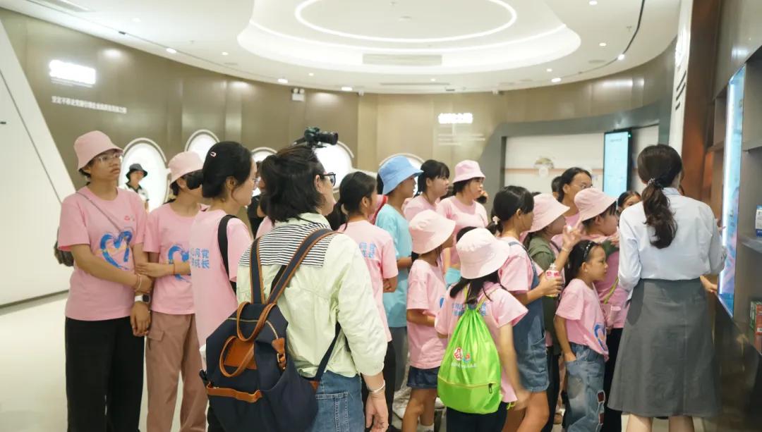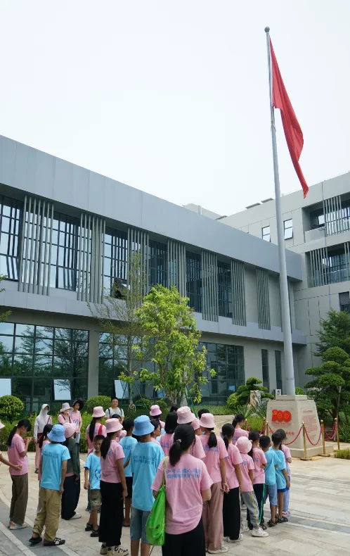 紧接着,孩子们来到了建党百年庆典红旗——070号红旗前。讲解员讲述了东升国际药业集团与庆典红旗的深厚渊源。孩子们听得津津有味,眼中闪烁着对党和国家的热爱与敬仰。